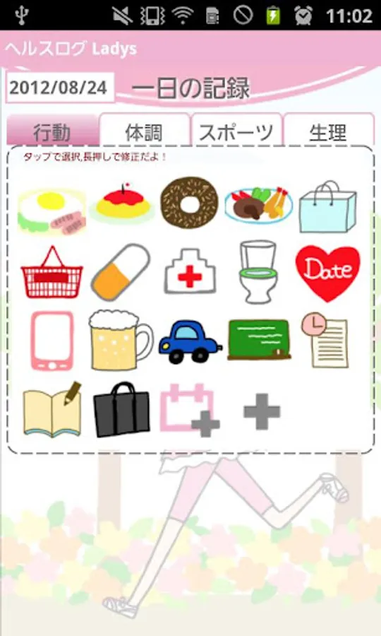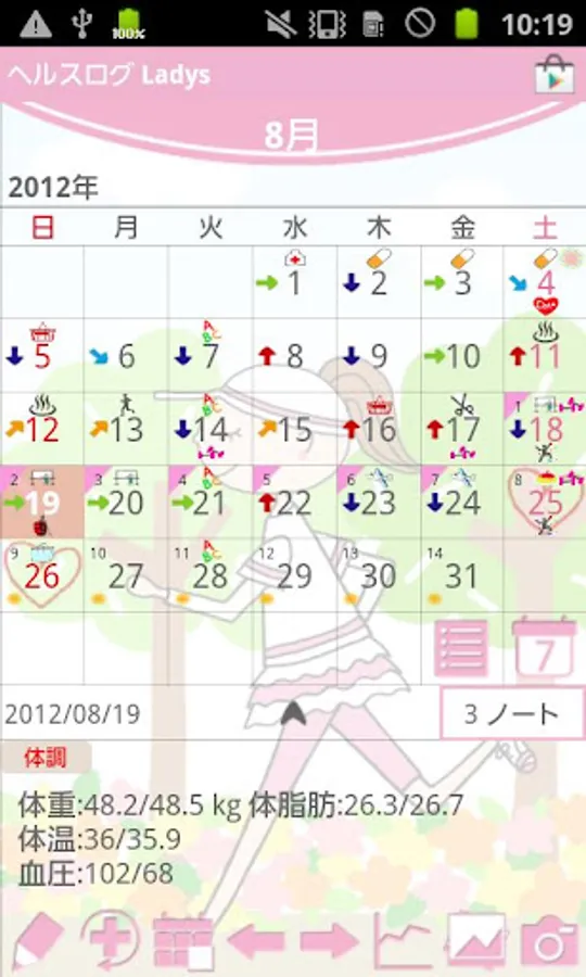 Just tapping a pensil (Event) button on the calendar to register daily health conditions!