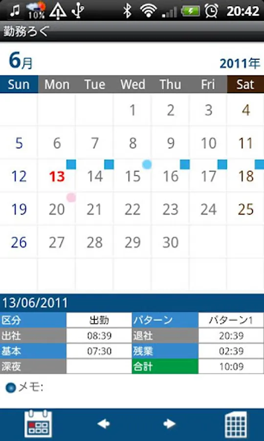 6. When you tap "IN" ( arriving time at work ) button, the time will be automatically saved.