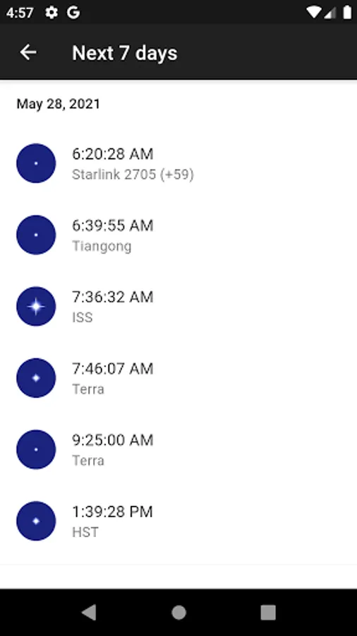 - Predictions of satellite, Starlink and ISS sightings accurate to the second.