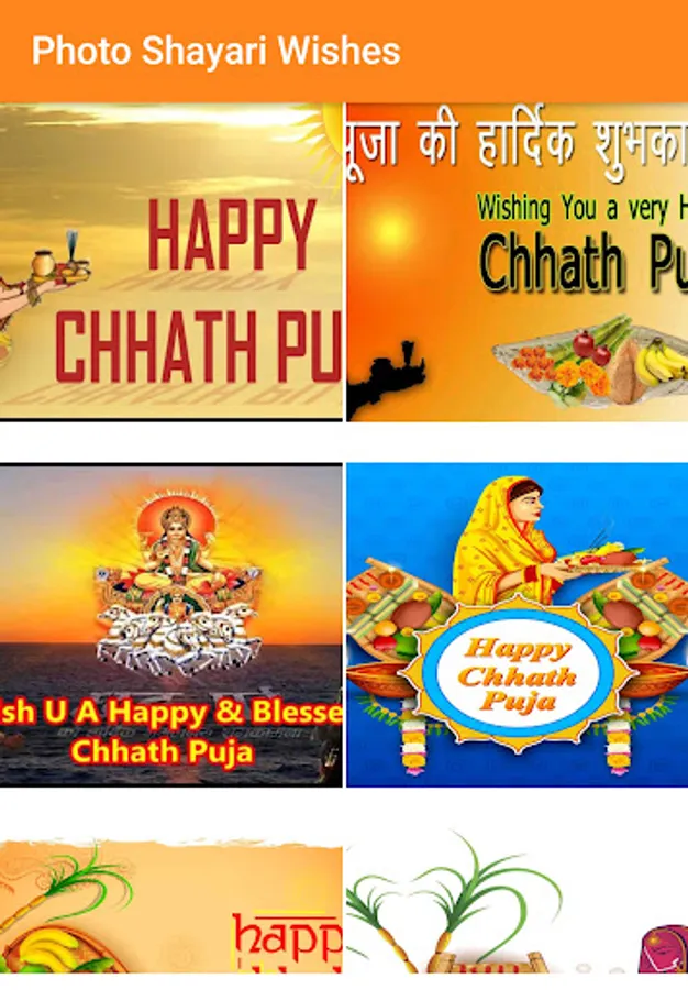 Happy Chhath Puja Wishes is a free online Happy Chhath Puja Wishes, Messages & Images Generator. You can simply scroll the texts and images and send the best one to your friends, siblings, families and love. Happy Chhath Puja Wishes supports all social media Apps like whatsApp, Facebook, sms, Instagram, etc. for sharing both the text and Image wishes.