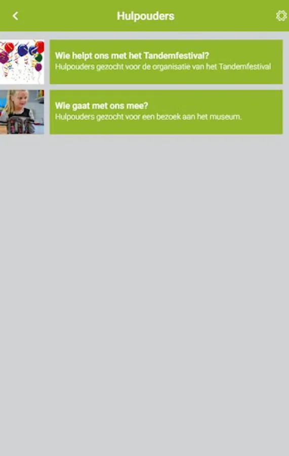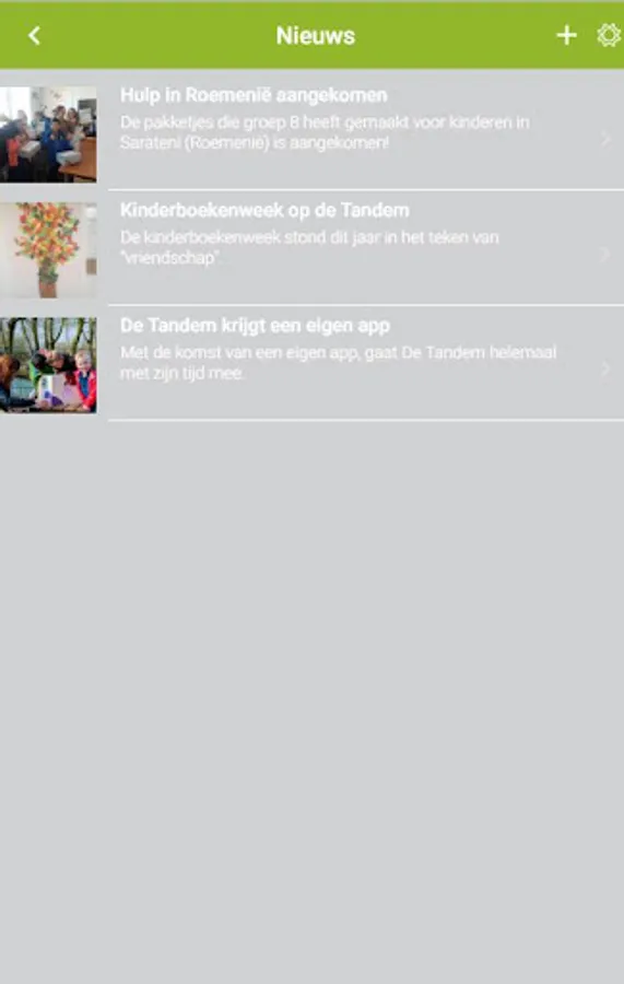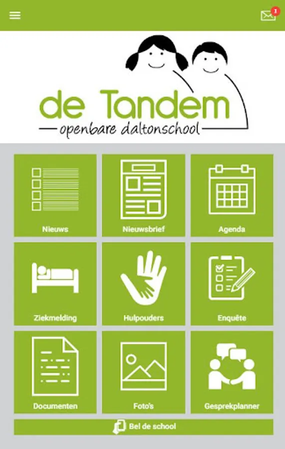 The De Tandem app has been developed to streamline and facilitate communication with parents and carers. Through the app they receive news reports, newsletters, help questions, surveys, documents, photos and appointment requests. Parents can use the app to report their child ill, call the school quickly and possibly easily access links such as Facebook, Twitter and ParnasSys. In order to log in, the user needs log-in data that he / she receives from De Tandem.