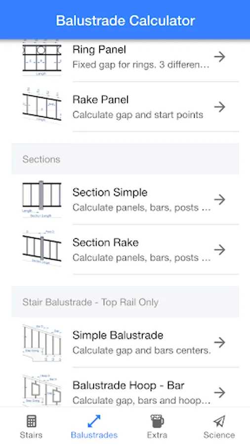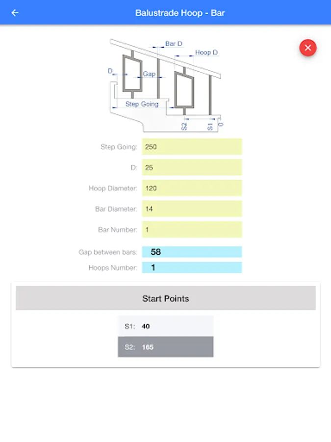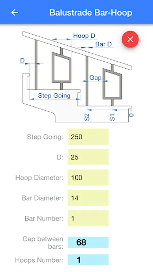 Stair balustrade top rail only: 4 calculations to calculate the gap between bars and hoops.