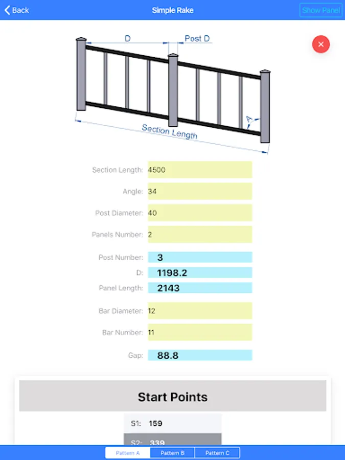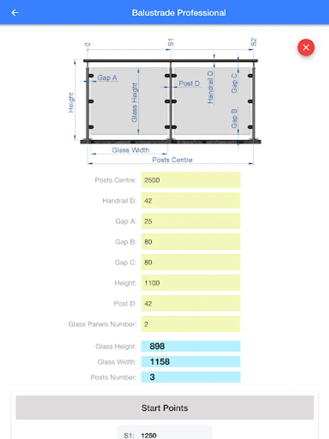 Balustrade Professional: calculate glass panel width, height and start points for the post.