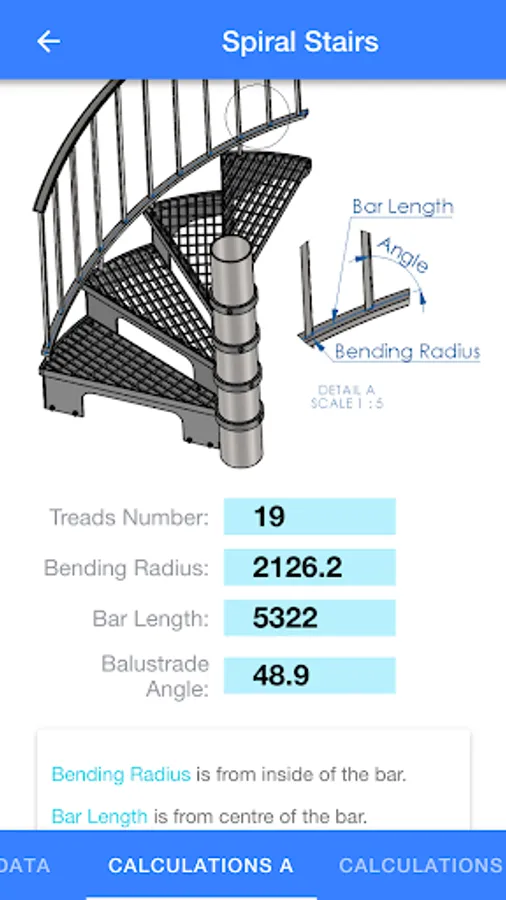 Spiral Stairs: perfect for production and estimating price. Calculate the bending radius for balustrade rails. Angle and perimeter of a balustrade.