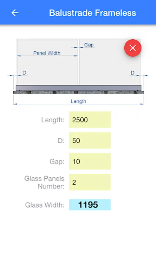 Balustrade Frameless: calculate the glass panel width.