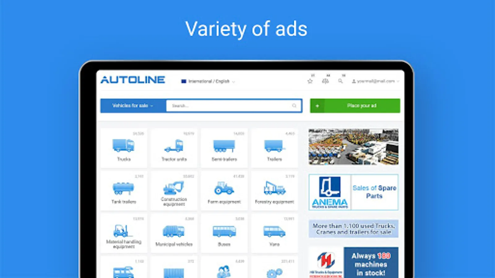 Autoline is a specialized web portal for buying and selling trucks, buses, construction, agricultural and municipal machinery, spare parts and equipment. Using our app, you will be able to find a lot of ads for vehicles for sale, repair and maintenance offers, construction, heavy-duty and special machinery for rent, and services in transporting over-sized loads.