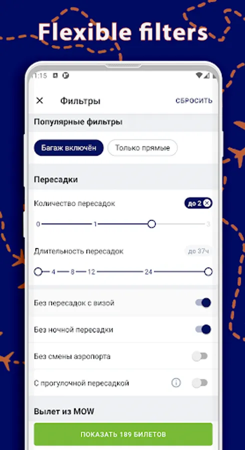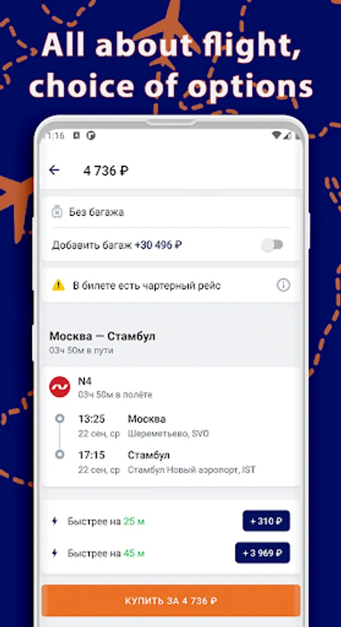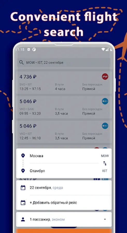 The app contains no ads and is completely free. There are no hidden fees and commissions, you can see the final cost of transportation immediately. In this application, you do not run the risk of running into scammers, of whom there are a lot. We cooperate only with airlines and reliable and trusted agencies that have been working on the market for many years.