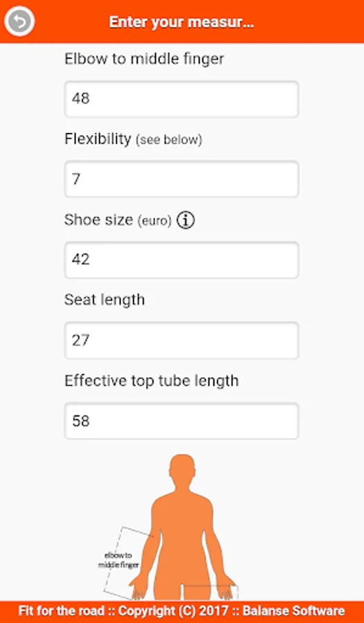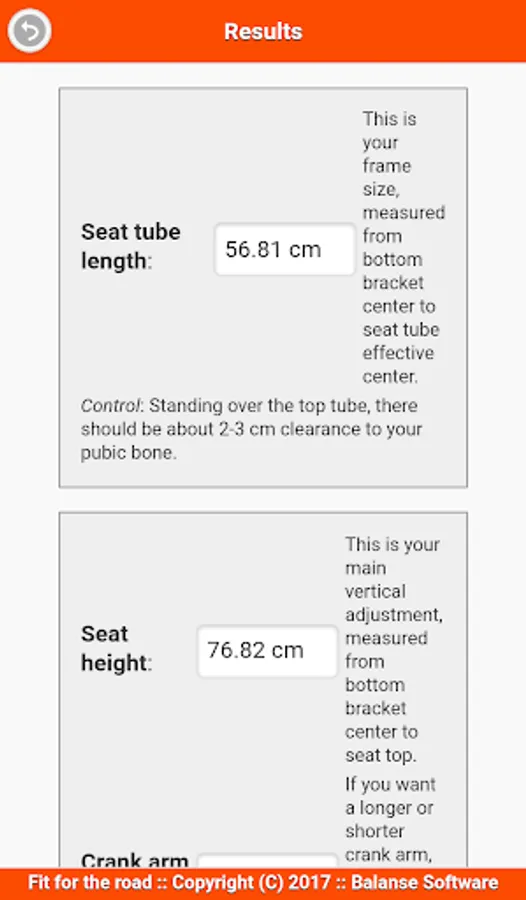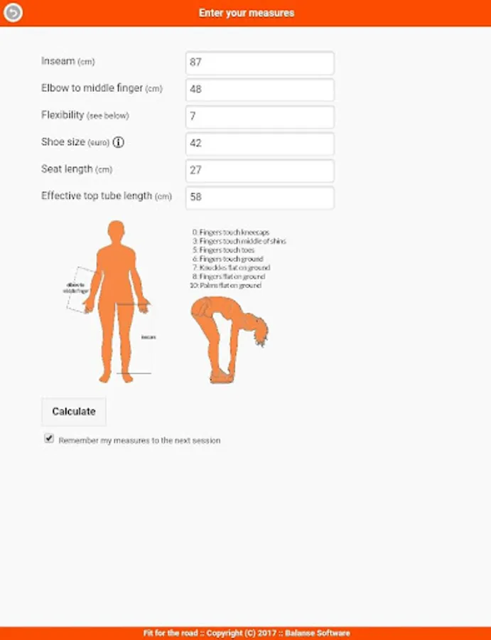 Do you enjoy this bike sizing calculator for your racer bike? If so, please rate it 5 stars and press the ads. Thanks!