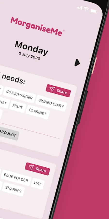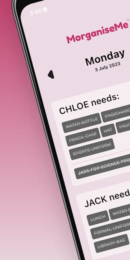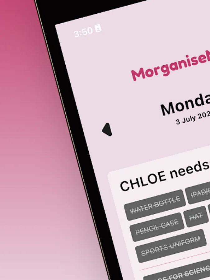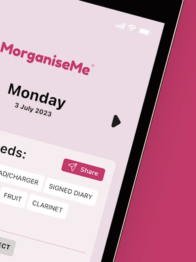MorganiseMe is an app that reminds parents what their children need in their school bags each day.