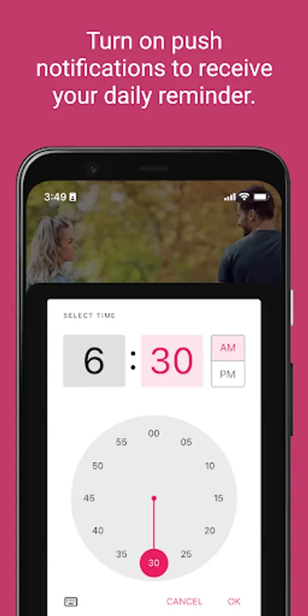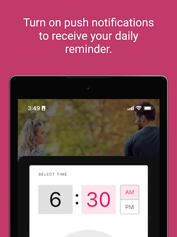 > In settings, turn on push notifications and the time you'd like to receive your daily reminder