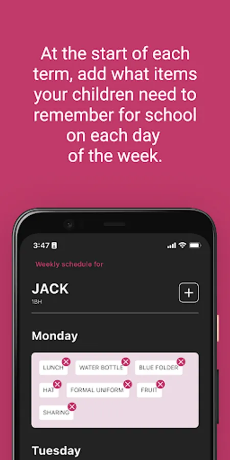 > If you co-parent, have grandparents dropping the kids off at school, or you are trying to encourage your older child to pack their own bag, you can easily send the list to their device.