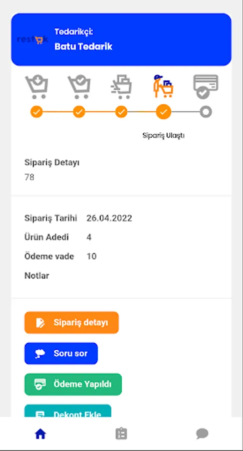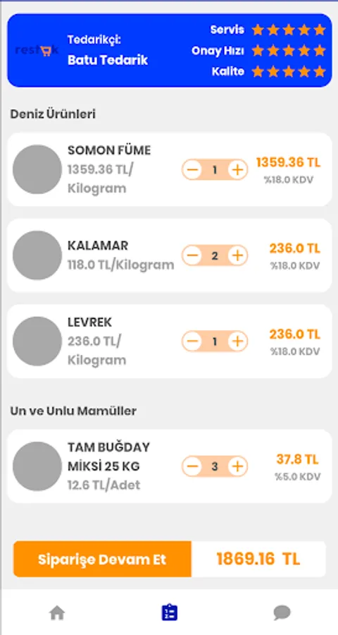 The application allows restaurants to easily place orders, track their orders and instantly talk to their suppliers; on the other hand, it allows suppliers to follow their orders and communicate instantly with restaurants.