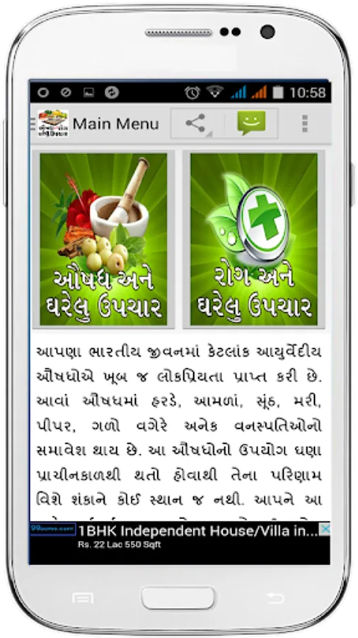 To survive with good health in such condition we introduce a mobile app. dadi maa ke nuskhe and gharelu nuskhe for weight loss are also covers in this app. This app will definitely help you to cure from many diseases from your home remedy. In this app more than one solution is being represented for a single disease, because disease depends on context to patient. If we try some remedies as given as in app, it is harmless as it is natural. Overall by using this app you can also helpful to others from many diseases like diabetes,hair growth and Cough .