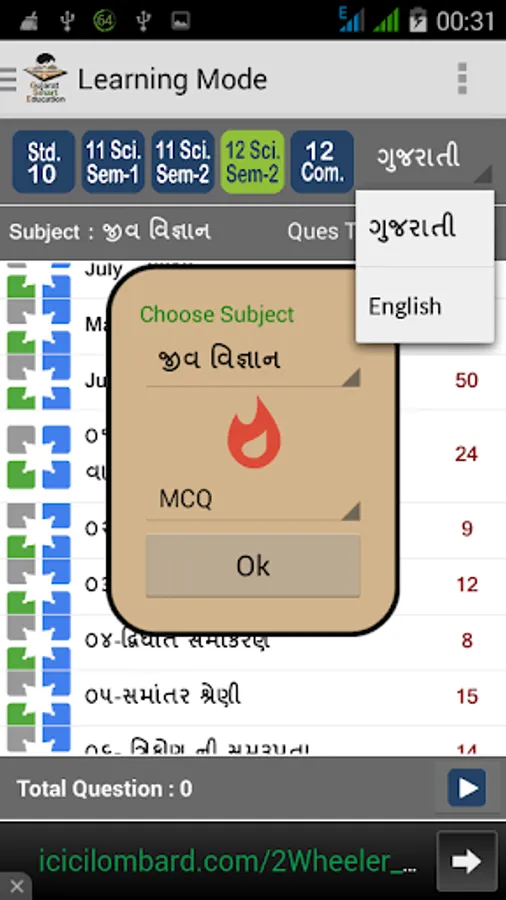 Currently this App provides MCQs of textbook, MCQs of previous year question paper and MCQs of extra practice and all the subject details of Standard 10 i.e. Maths, Science,Social Science,English,Gujarati,Sanskrit As well as in Standard 11,12 Physics, chemistry , Biology and Maths.
