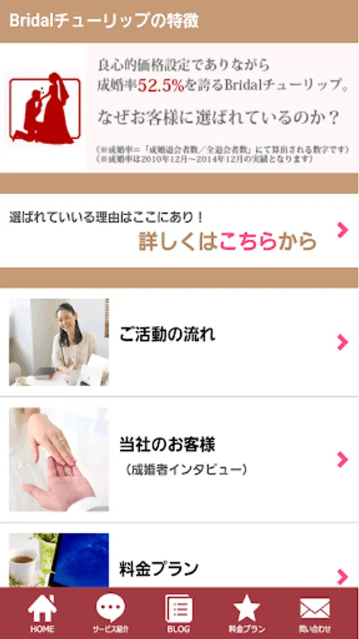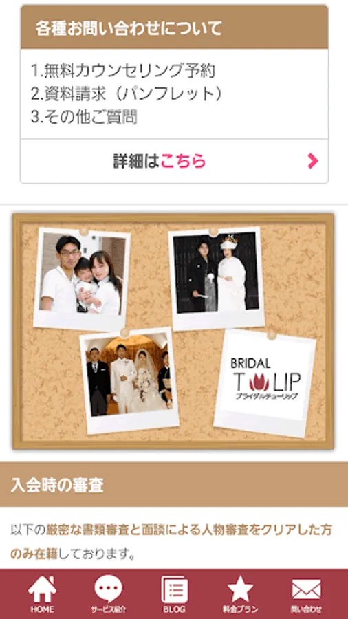 このアプリでは、結婚相談所「ブライダルチューリップ」が、婚活・結婚相談の生の情報を発信します。