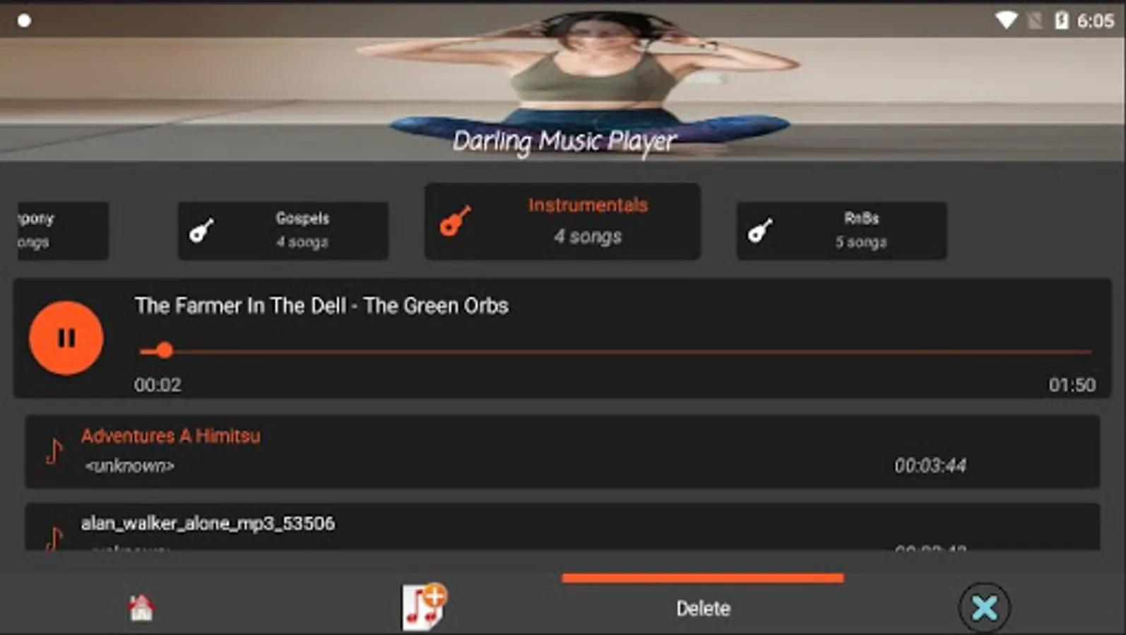 5. Material-themed by using a dark skin as the primary color and an orange color as the color accent.