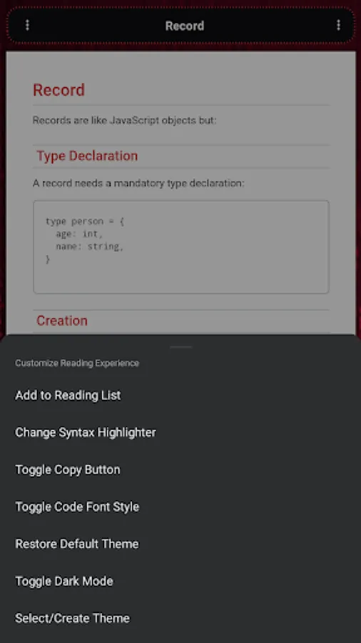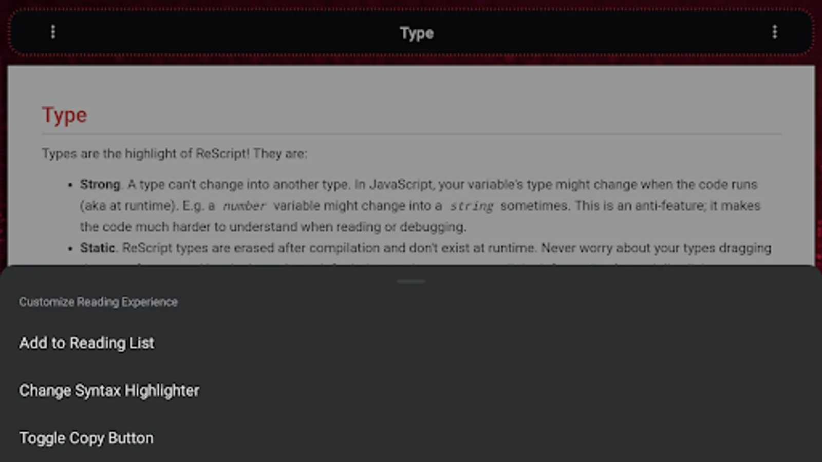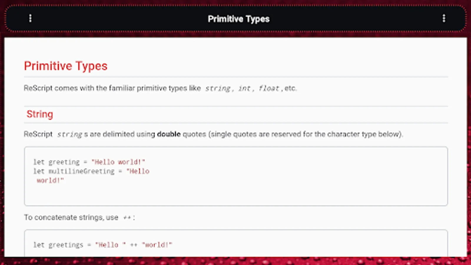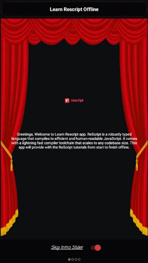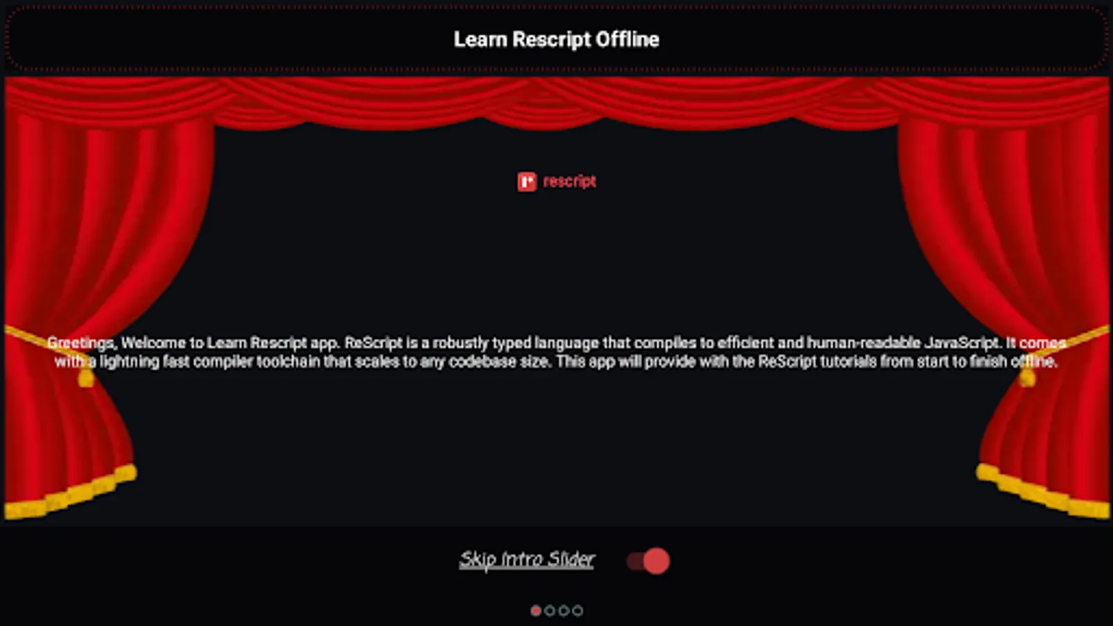 This is an app that lets you learn Rescript programming language from start to finish, in a distraction-free manner. It is a beautiful and responsive app, with modern animations, syntax highlighters etc.
