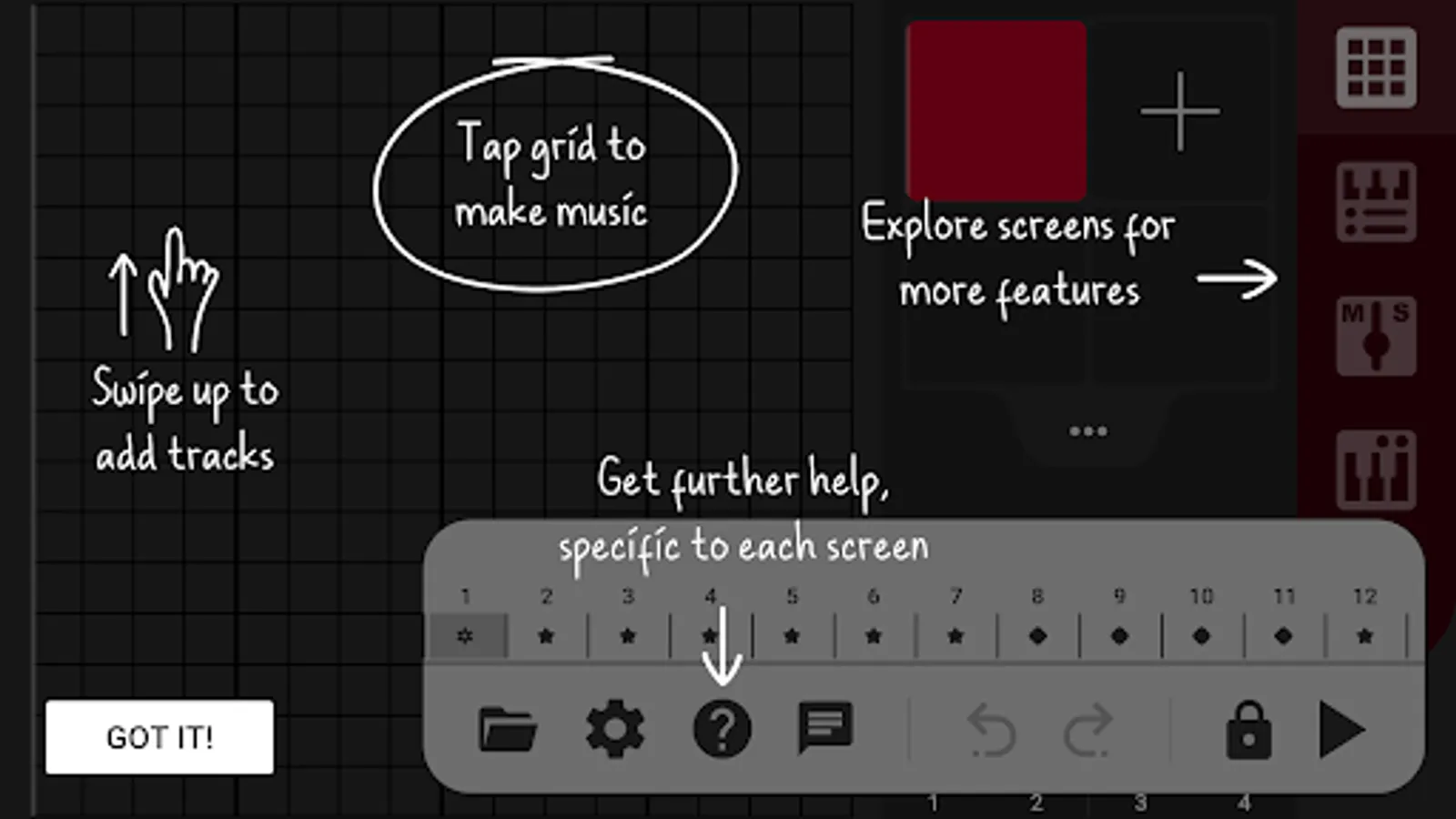 Instead of emulating traditional desktop music software it uses a mobile friendly approach inspired by more recent mobile offerings. At the same time it is not just a toy, and by exploring the help slides and the app itself you will discover several features uncommon in similar music making apps.