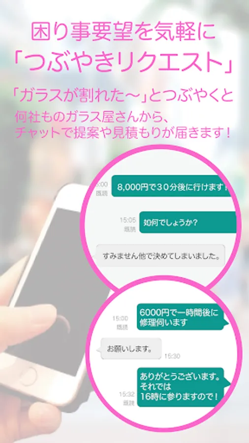 A service that allows users to send push notifications to all target stores if they make a tweet about their wishes or concerns, and can make individual suggestions by chat as they are.