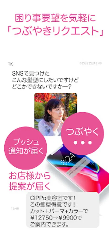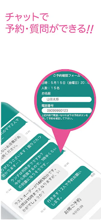 ◎予約、push通知、スタンプカード、タイムライン、チャットができます