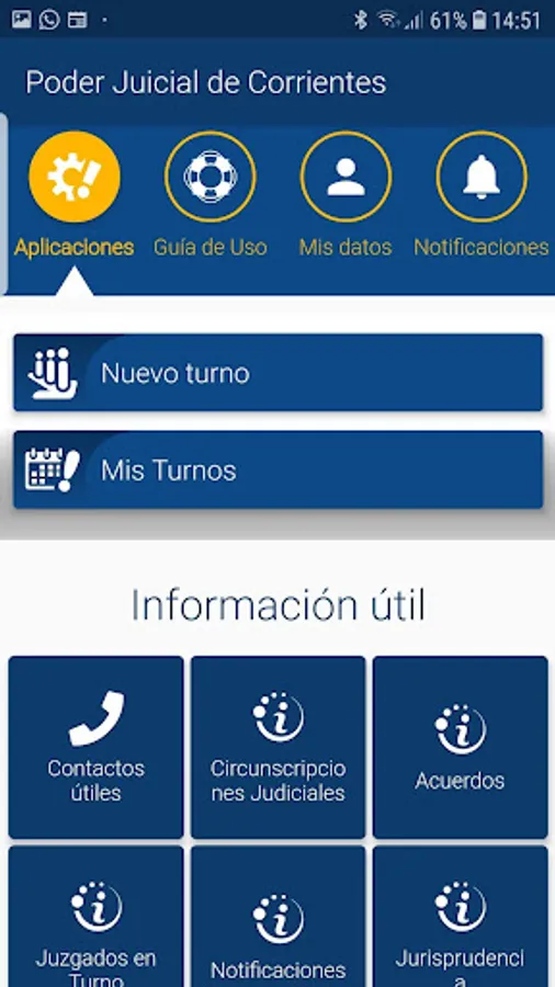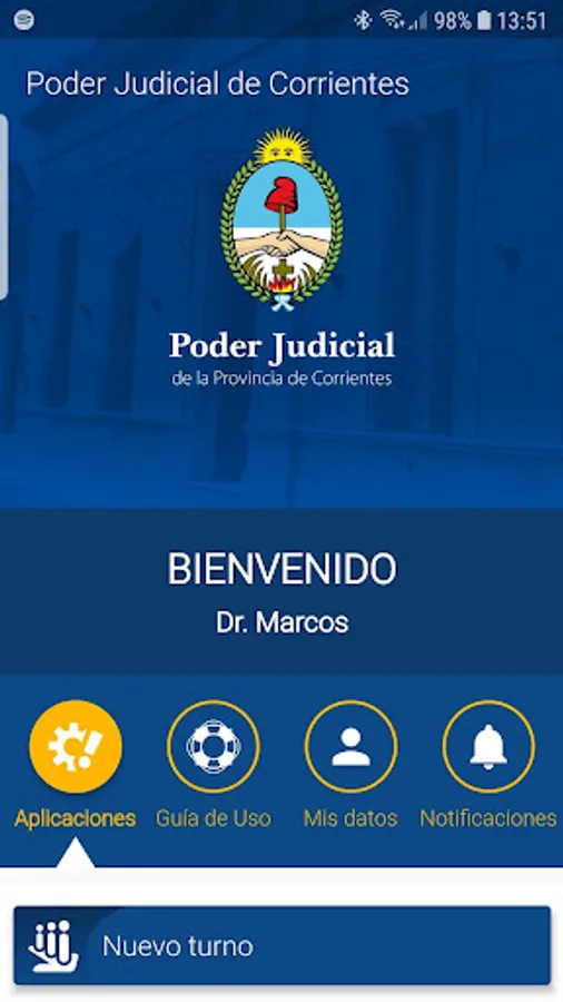 Welcome to the application of management of Shifts of the Judicial Power of the Province of Corrientes. This application will allow citizens and professionals to request scheduled care shifts for the different judicial districts and offices of the Judicial Power of the Province of Corrientes.