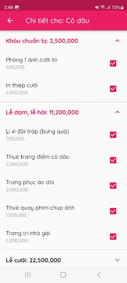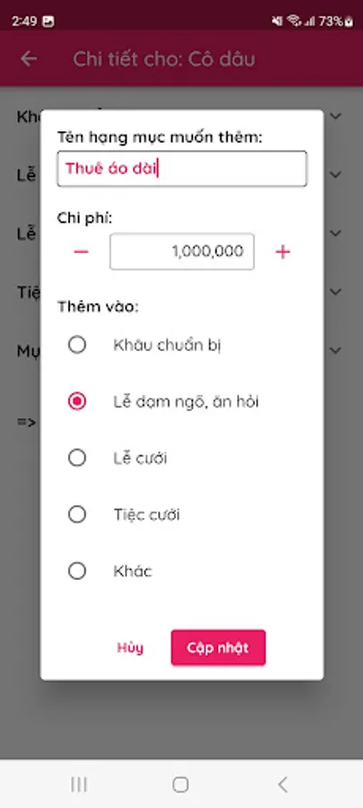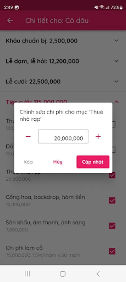Estimate the cost of items to prepare, you can edit the numbers yourself, or add new items.