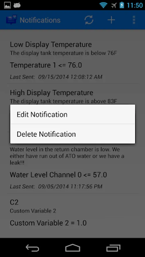 This app works in conjunction with the Reef Angel Portal (http://forum.reefangel.com/). It allows you to manage your triggers/notifications on the portal without having to load up the portal web page.
