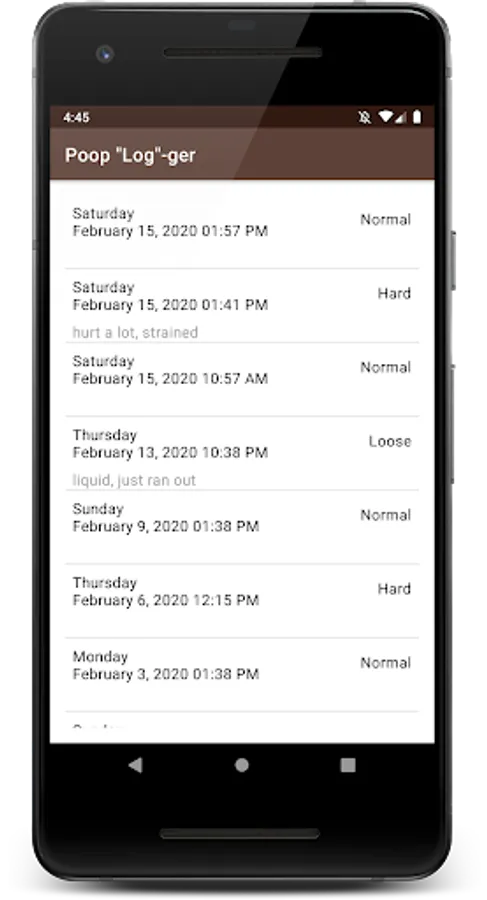 It's quick and simple to track when you poop. You can easily view your poop history.