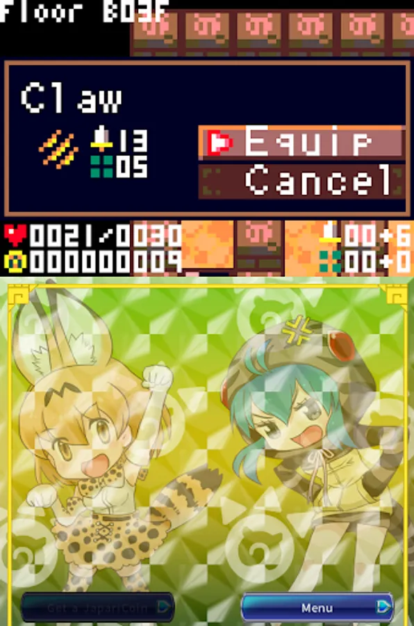 In this application, you can choose 'Tsuchinoko' 'Serval' 'Bag-chan" "Toki". Try playing with your favorite friends.