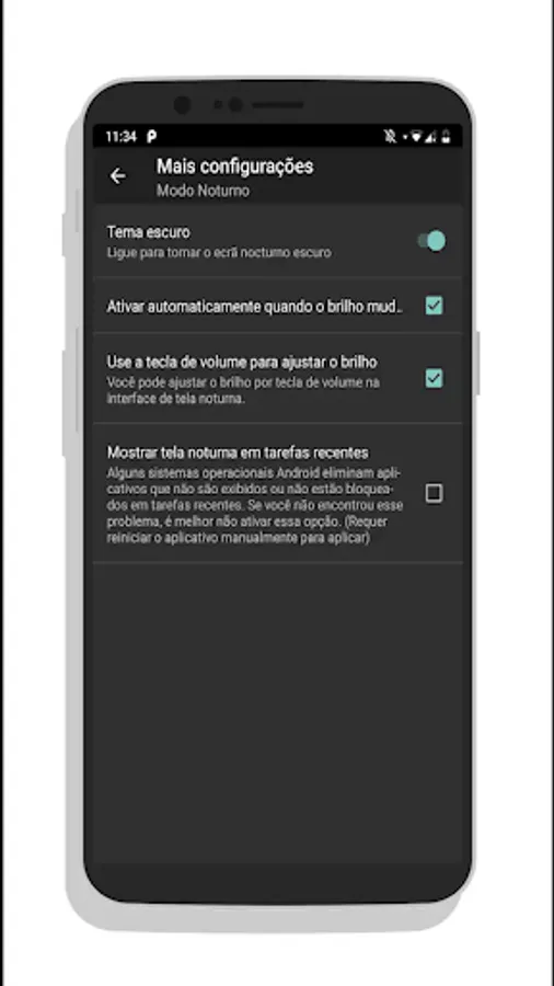 When using the device at night or at dusk, even with the brightness of the screen at a minimum you may feel your eyes tired. Switch to 'Night Mode' to enable the reduction of screen brightness through a dedicated additional reduction filter as well as through the blue light main filter.