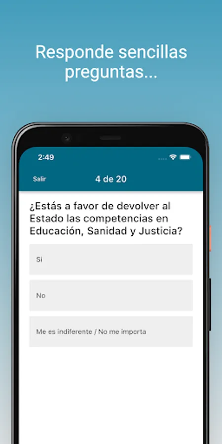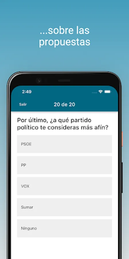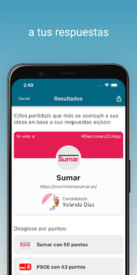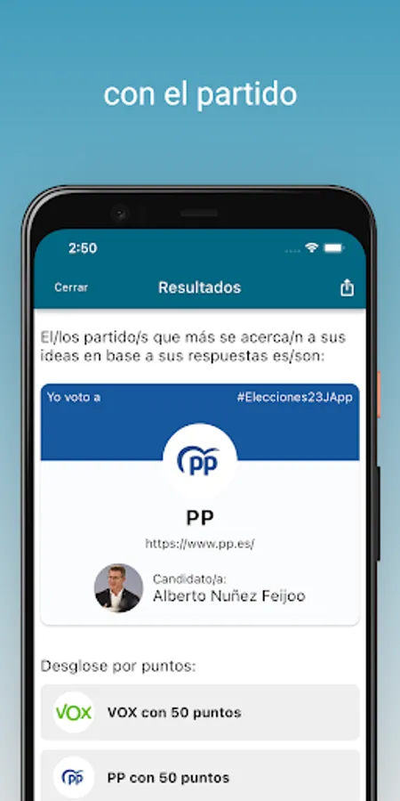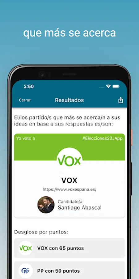 IMPORTANT: This application does not represent any government entity or any political party. Both the developer and the application are totally independent and do not depend on any political party or subsidy. All the information shown in it has been prepared by analyzing the electoral programs of each of the political parties. You can check the sources here: