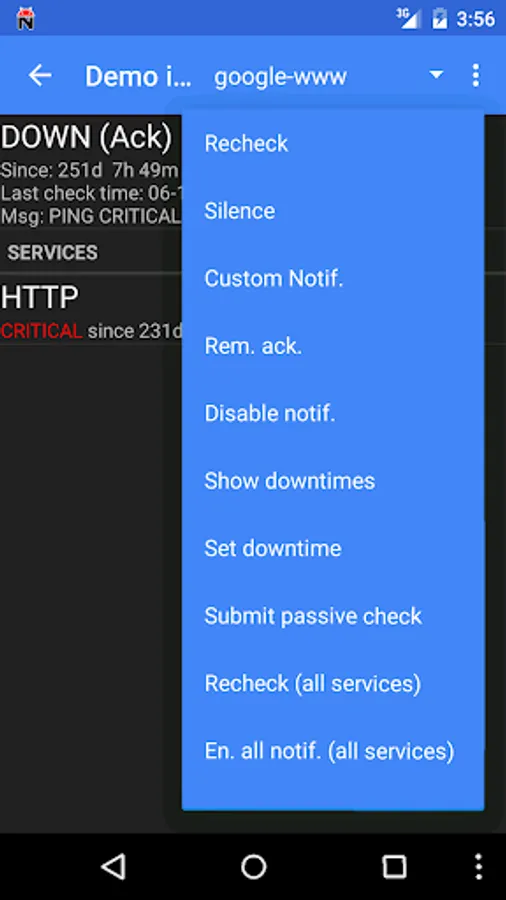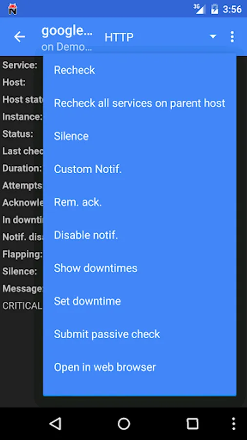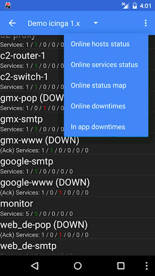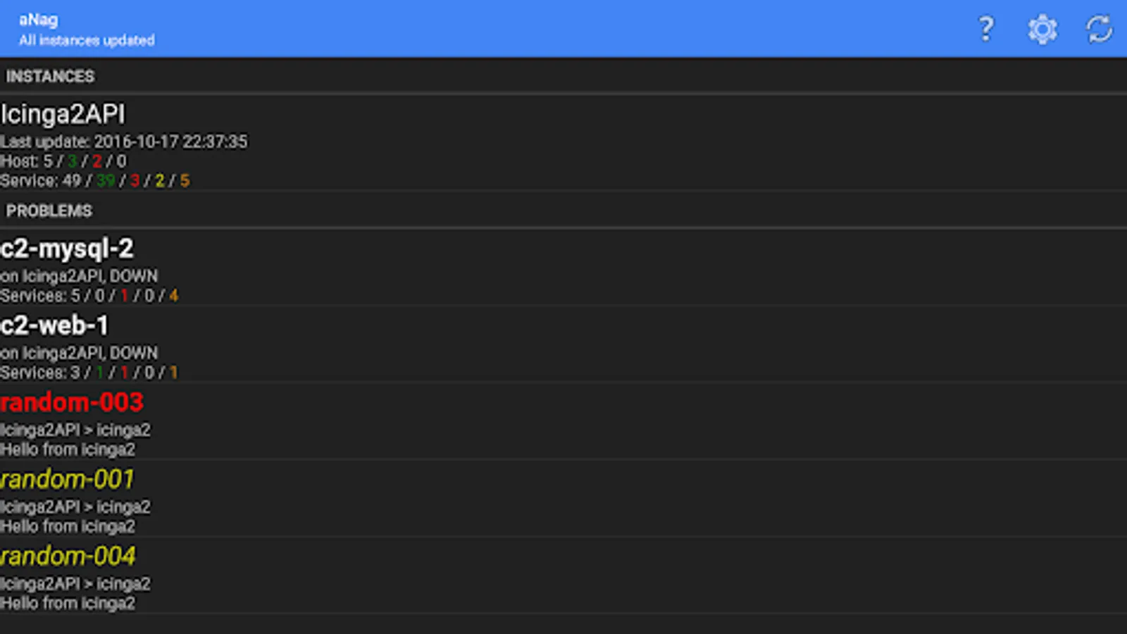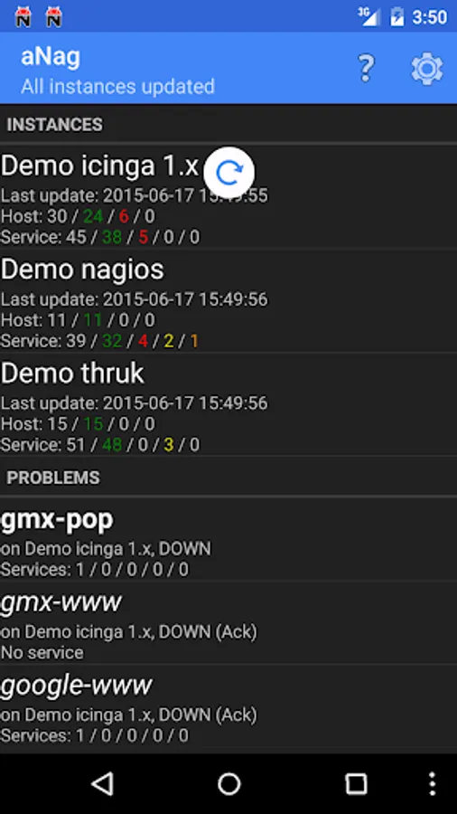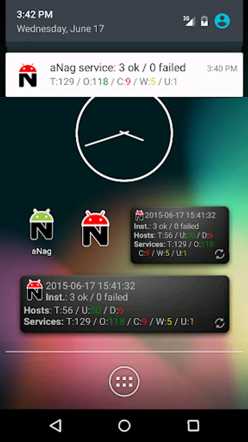 aNag is an unofficial Icinga, Thruk, Naemon and Nagios client for android devices. The goal of this application is provide to sysadmin an embedded overview of all their Thruk, Icinga and/or Nagios monitored infrastructure.
