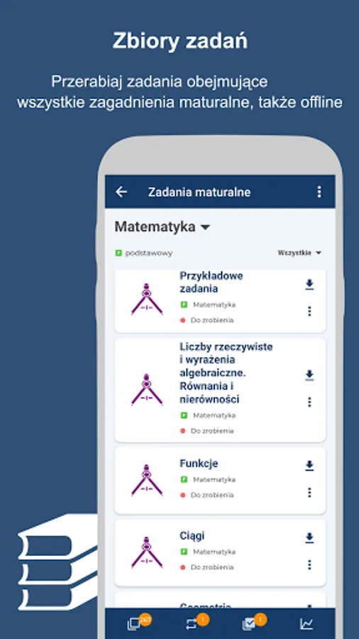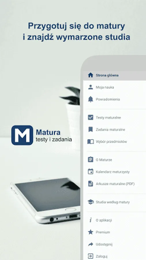 The application contains tests with sets of questions from 2005 on the basis of previous high school exams with full answers. They are divided into the following levels: basic, extended and bilingual (modern language).