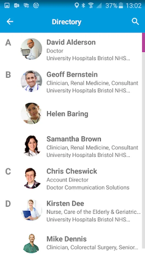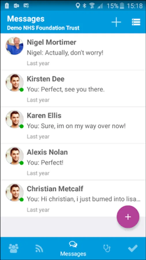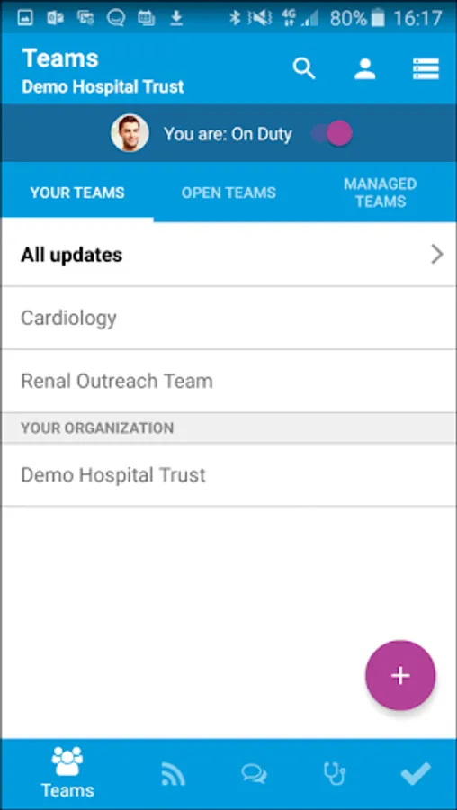Find and instant message any number of colleagues within your healthcare organisation. You can start, view and comment on conversations, shared files and calendar events within each of your teams. Share photos from your device with your groups. Encryption of data and information governance certification ensures you can transmit patient sensitive information safely and compliantly.