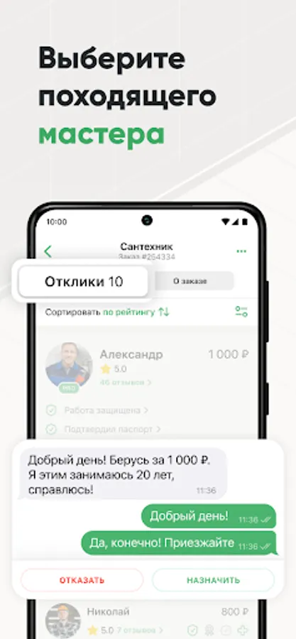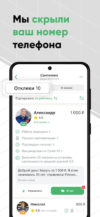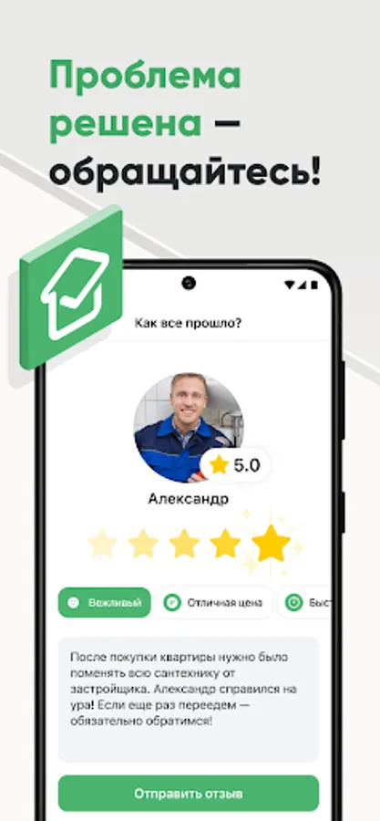 We take into account all the reviews and assessments of the masters, and the performers themselves undergo a thorough check: checking documents and all important information about the master, testing professional skills, having a questionnaire with photos and examples of work. Don't worry, we detect scammers and remove everyone who violates the rules of the service. And if suddenly something goes wrong - the House Without Worries compensates for the losses!