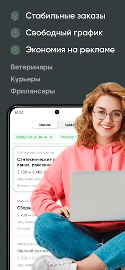 Need a job / side job and a high salary? Looking for convenient vacancies nearby? Home Without Worries: Jobs and Vacancies for Craftsmen helps private professionals, self-employed and companies to find clients and earn! More than 1000 orders and vacancies for professionals appear daily in our service. Together with Dom Without Worries, you can easily find a job / part-time job both throughout Russia and in your city close to home. Be the first to know about new orders and choose tasks that interest you. Communicate with customers and get paid directly from customers.