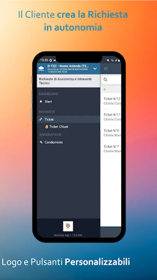 Simplified app, reserved only for YOUR CUSTOMERS, where each of them sees only their requests, the list of their technical interventions and quickly checks the progress of each request sent.