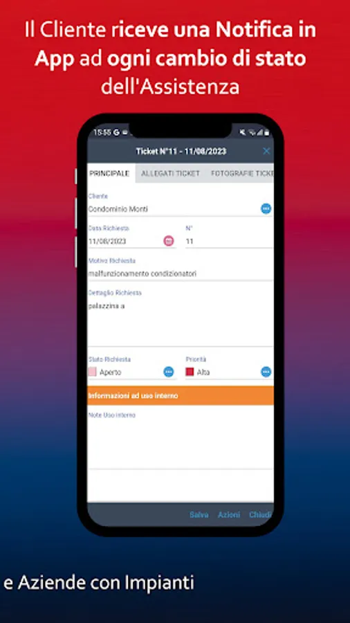 HE, autonomously, directly from his Smartphone and Tablet, sends you the Requests for Technical intervention.
