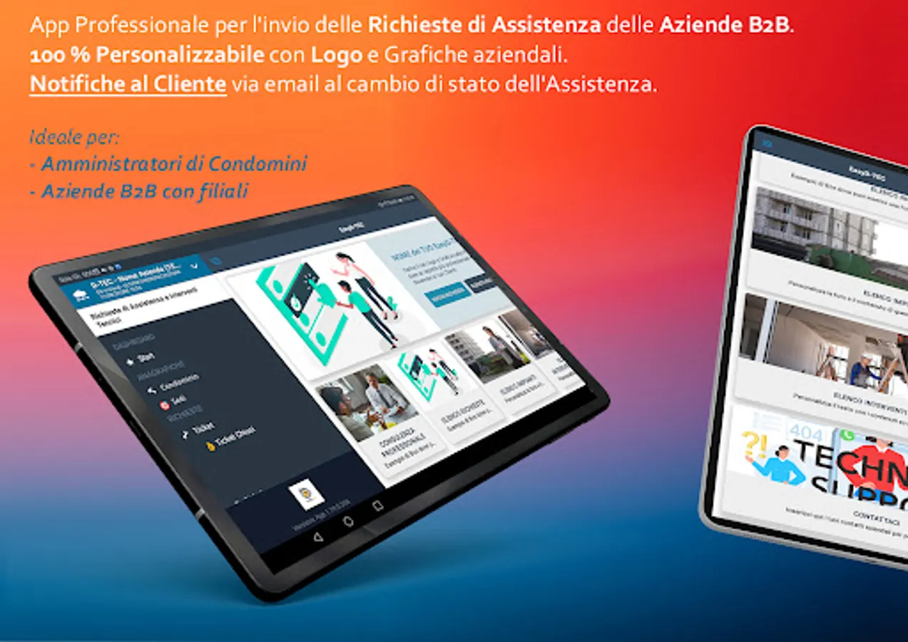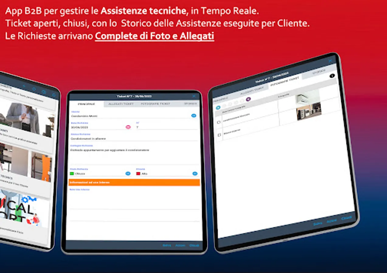 The only Professional App in Italy, with which your Customers can send you Requests for Assistance and Technical Intervention directly in the App.