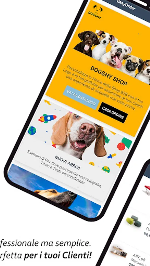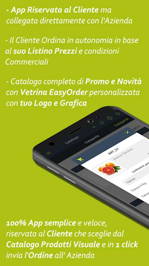 Using the OneOrder Application you customize the B2B showcase and activate your Customers. EasyOrder App dedicated to the Customer, from which he, in total autonomy, can create Orders, Reorders and discover the latest news and commercial promotions dedicated to him.