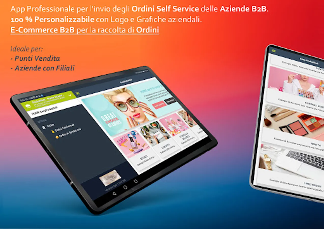 Using the complete PocketSell App you can customize the EasyPocketSell showcase and enable your Customers to place Orders by themselves, independently, in Self mode 24 hours a day.