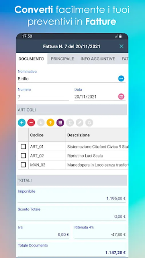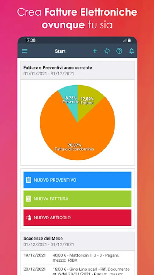 - Invoices to Companies, Private Consumers, Condominiums and Public Administration