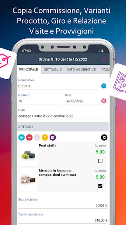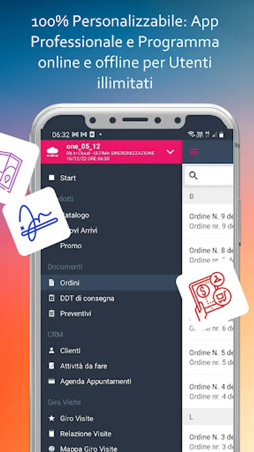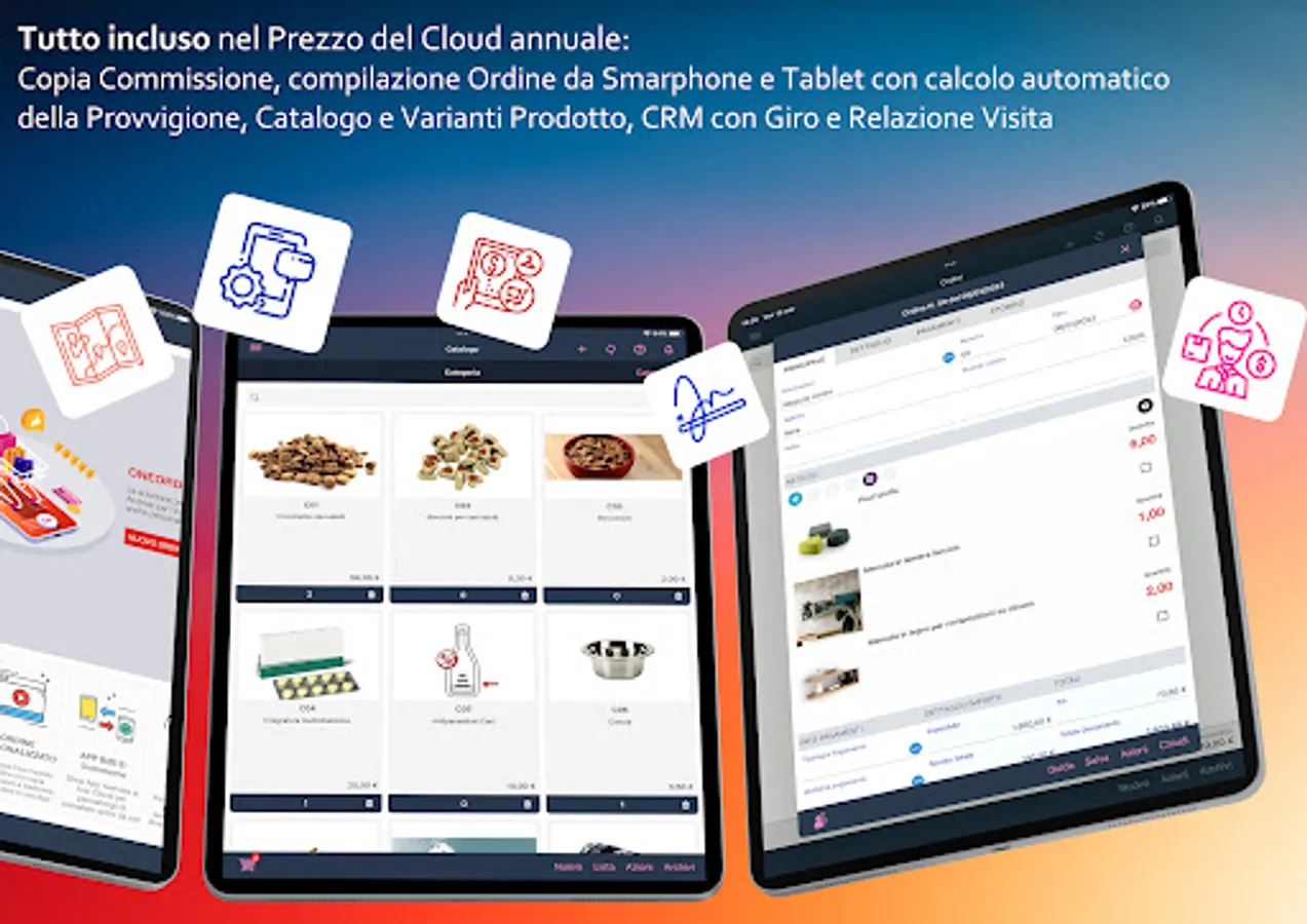 OneOrder is the complete App for Order Collection, Sales Management, Digital Product Catalogue, dedicated to Commercial Agents, the Sales Network and the End Customer. 3 sales tools in a single program with always updated Orders and Catalogues.