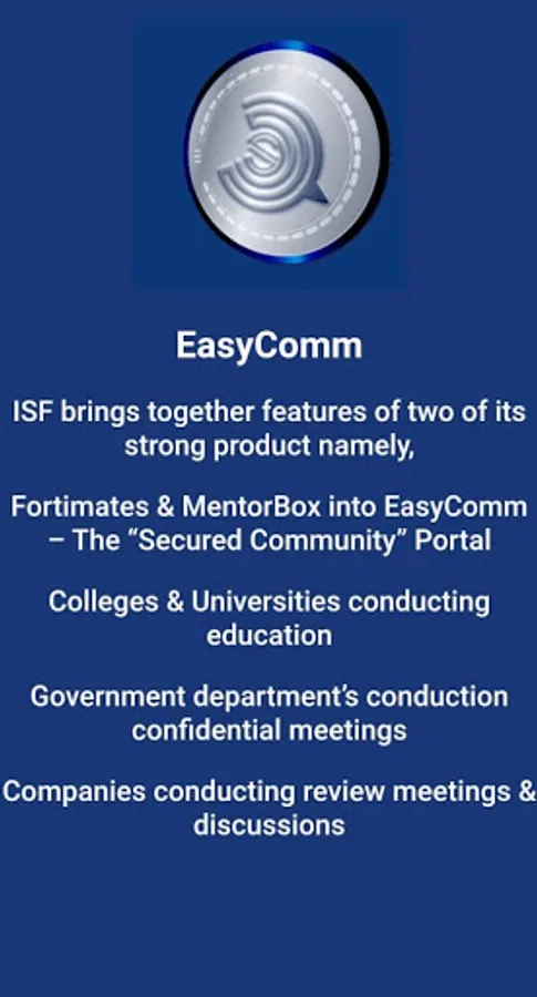 ISF brings together two of its strong products namely, Fortimates & MentorBox into EasyComm - "The Secured community Portal."