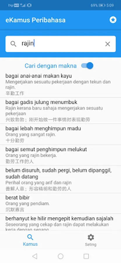 • Penanda buku: Membolehkan anda menyimpan simpulan bahasa dan peribahasa