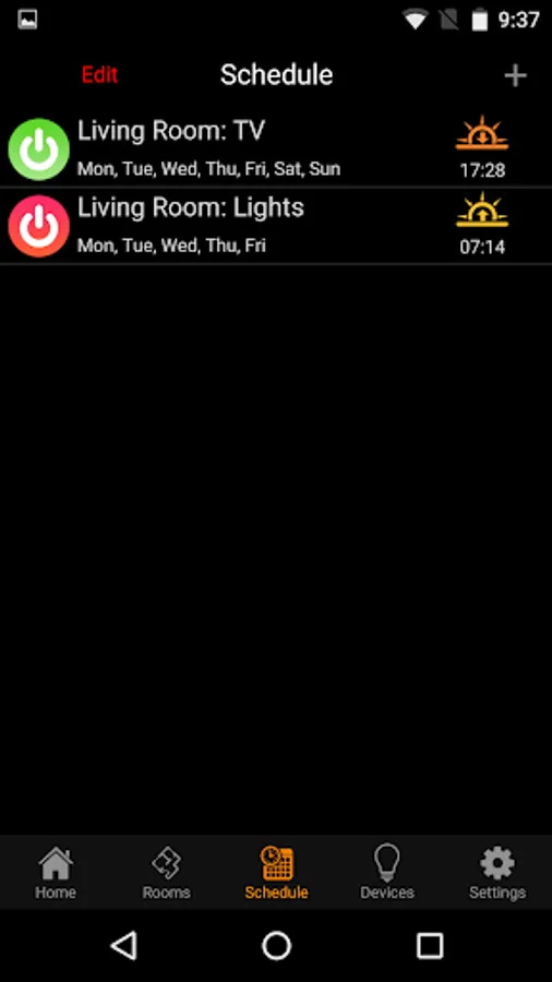 You can setup a schedule for switching devices on/off based on specific time, sunrise/sundown or presence/absence detection based on a FritzBox router.