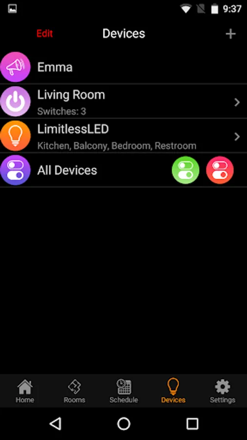 In combination with the EnlightMe Server you can control your LimitlessLED/Milight LED lights, Elro power switches and even an iRobot Roomba if you have the RooWifi add-on.