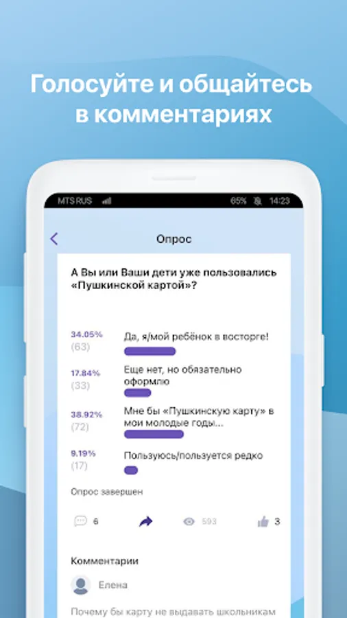 Participate in polls and share how you want to see your locality. The administration publishes news and polls, and residents discuss topics in the comments to them.