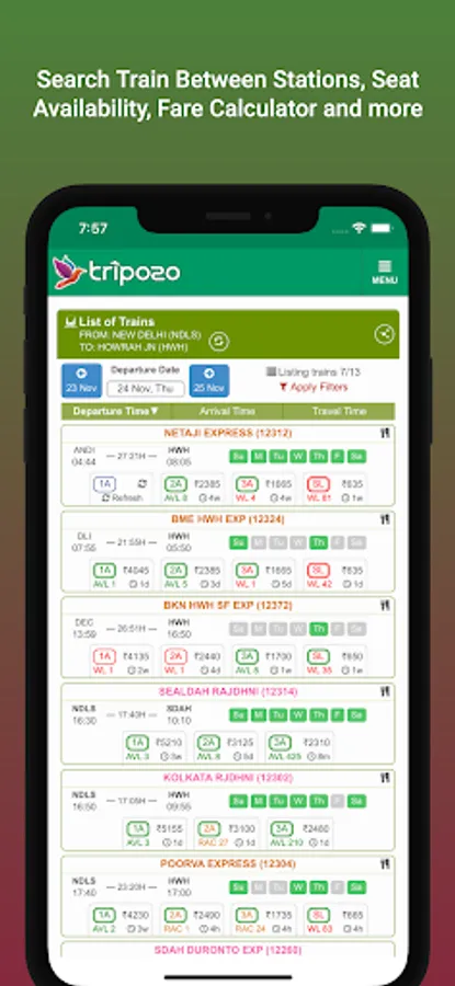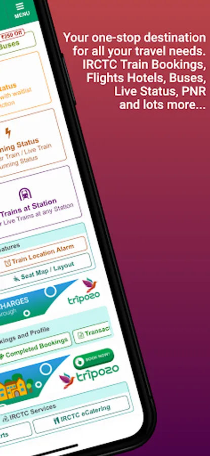 Ensure the availability of all trains in a single tap. A advanced view of running status with historical NTES train enquiry data is also at your fingertips. This app has all the information that a traveler would ever need.