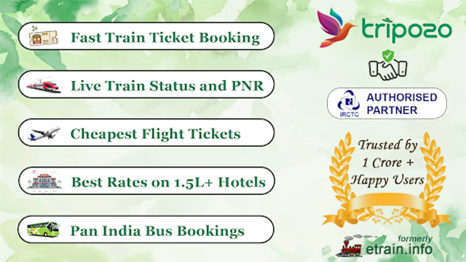 IRCTC authorized partner app for confirmed train ticket booking offering a simple & superfast railway ticket booking process.